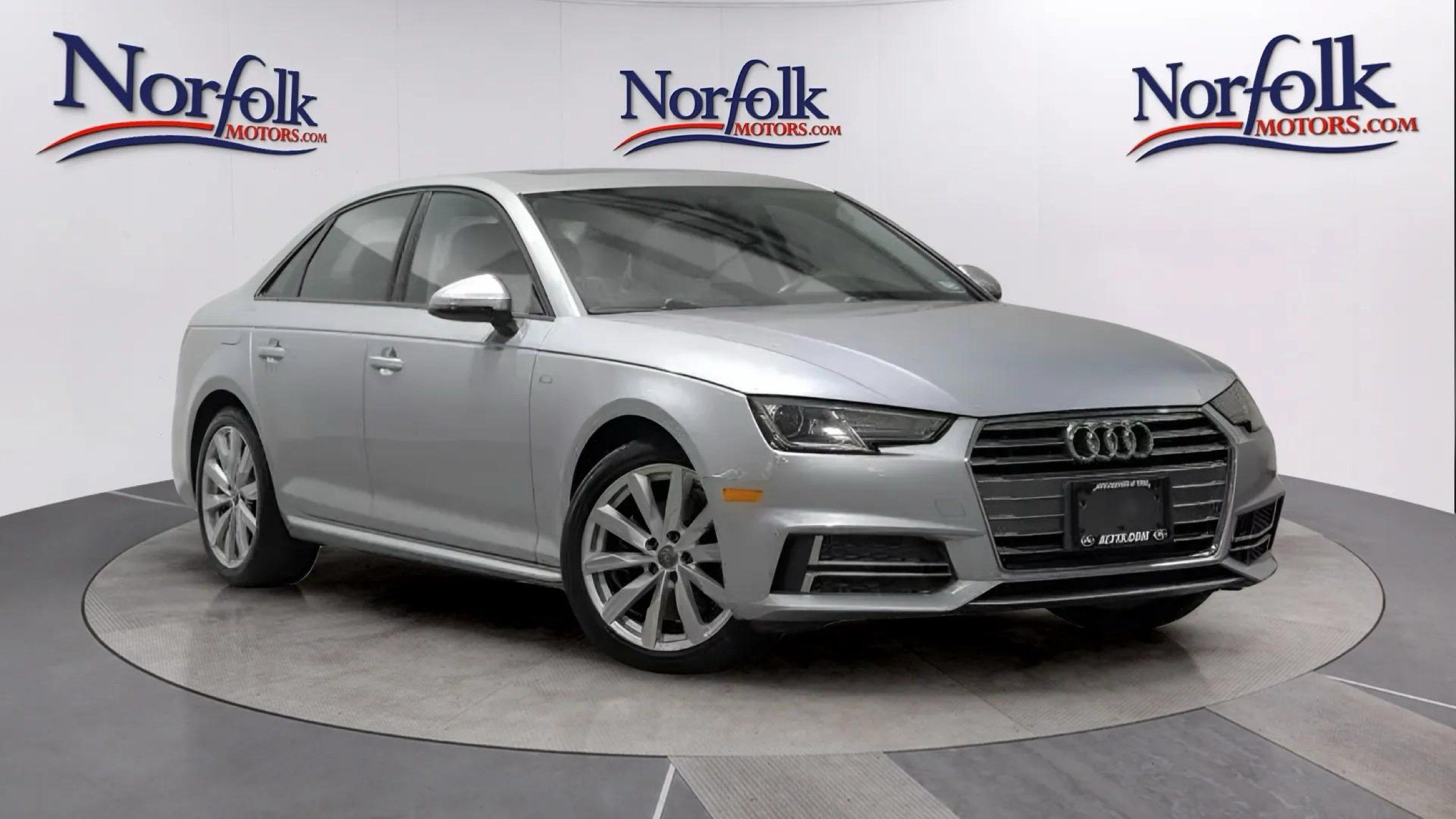 Experience the perfect blend of elegance and performance with this 2017 Audi A4 2.0T quattro Premium Sedan, dressed in a stunning Florett Silver Metallic exterior. Under the hood lies a robust 2.0L Turbo I4 engine that delivers an impressive 252 horsepower and 273 lb-ft of torque, paired with Audi's renowned all-wheel-drive system for superior handling in any condition. The sleek sedan design is complemented by luxurious features such as leather seating and a sunroof/moonroof, ensuring every drive feels like a first-class experience.